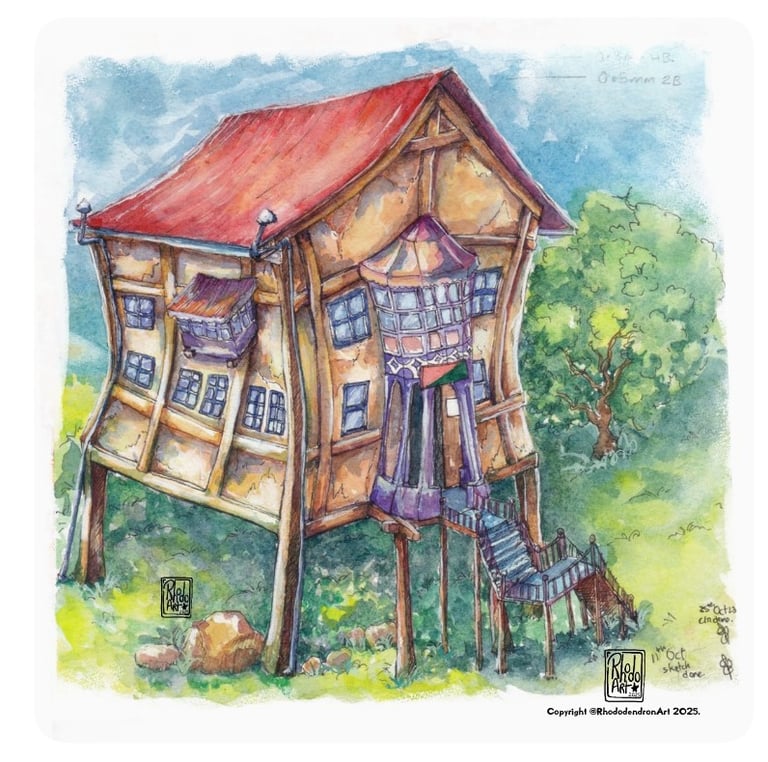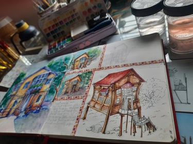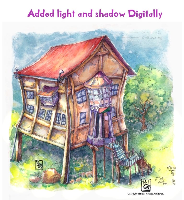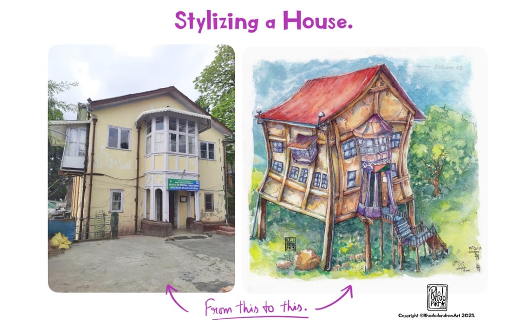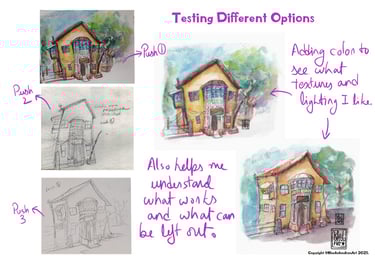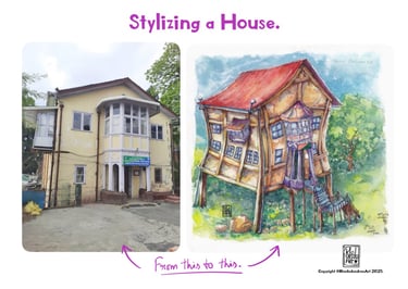 A step by step process of how I Stylize a house. Using Watercolors and ink.